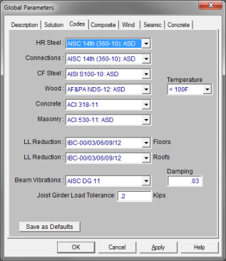 the design parameters for the steel code checks and may be accessed by