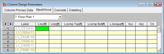Parameters controlling the steel design are entered on the Member Design Parameters spreadsheet. These parameters are entered on a per member basis, and control the code checking on a per member basis.