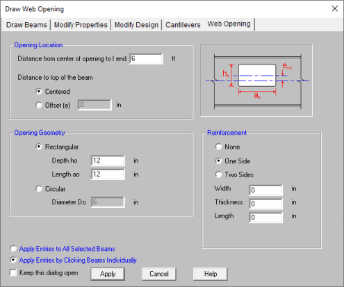 Opening Geometry - This allows you to choose the shape of the web opening as well as the dimensions of the opening.