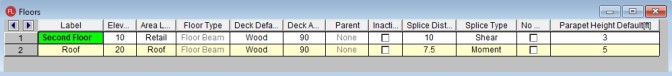 The walls and columns are physically extended. From here you can go to the Columns or Wall Panels spreadsheets if you need to extend parapets above this base level. These values are the Top of Parapet Height. If this value is higher than the Default Parapet Height then this component of win loading will show up in the Add'l Parapet entry.