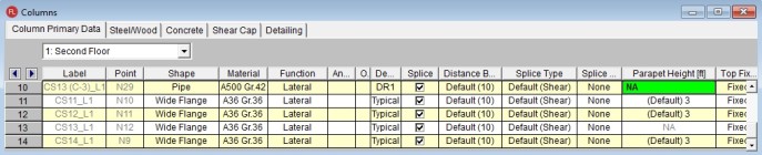 Parapet height information is located in three places: the Floors, Columns, and Wall Panels spreadsheets. If a floor has a Default Parapet Height set then all walls and columns at that level will have their parapet values set to that value. This is considered the Base Parapet.