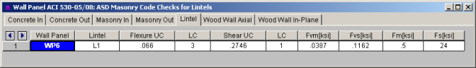 The Lintel results give the results for the masonry lintels that span over user defined openings in the wall. They can also be viewed by looking at the detail report associated with each opening.