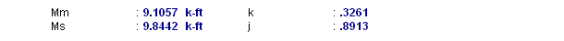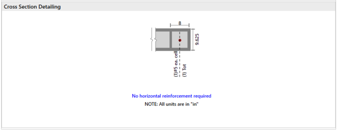 The Sectional Properties gives a number of the properties used during the iterative slender wall design procedure. All of these properties are reported based on a section of wall equal to the center to center spacing of the reinforcement.