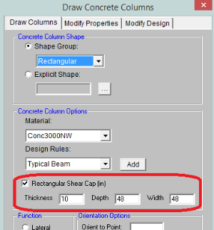 It can also be added graphically using the Modify Properties tab of the Draw Columns dialog, or it can be added via the Shear Caps tab of the Columns spreadsheet.