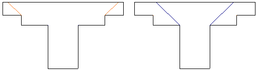 If either the slab edge is sloping or a column local axis is rotated it is possible to get a corner shear perimeter. The program will start by trying to draw the full shear perimeter. When this happens in this case we find that the shear perimeter has two parts of it that run into a slab edge. When this occurs the program considers this a corner. In this case
