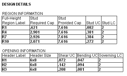 - This dropdown list allows you to select between different regions or headers defined within the individual wall panel.The Wall detail report gives an overall summary of your wall, complete with governing code checks and opening information. The Opening detail report gives information to the header design for the opening as well as detailed information for the Force Transfer Around Openings method. The Region detail report only applies for Segmented walls. Below we have give detailed information on each type of design: Segmented, Perforated and Force Transfer Around Openings.