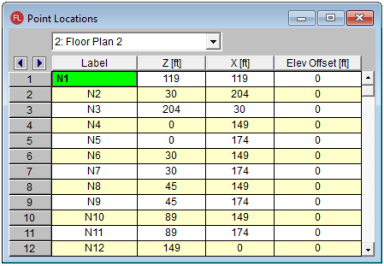 The last column contains Elev Offset. The elevation of the point is referenced for the floor level. If you enter a number larger than zero, the floor will be sloped.
