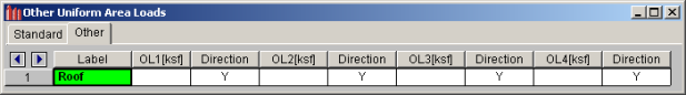 Other loads can also be applied graphically, see Drawing Area Loads. Other loads can be defined in any direction, see Load Direction. On the Other tab of the Area Load Definitions Spreadsheet the first column contains the load magnitude while the second contains the load direction.