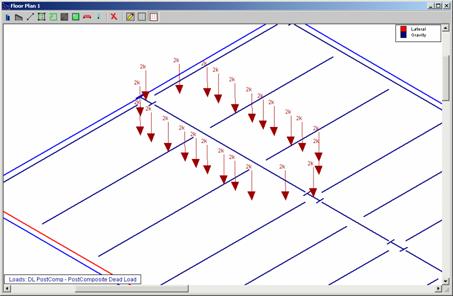 Point Loads are concentrated loads and may be placed anywhere on a floor. Point loads may be assigned manually in the Point Loads Spreadsheet or drawn graphically in a model view by clicking the Draw Point Loads button on the Drawing Toolbar.