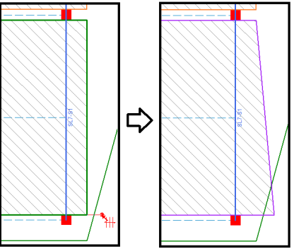 The Design Strip area edges will turn green and you can then drag the mouse closer or away from the Support Line perpendicularly. Left-click at the new location for the Design Strip corner. The Design Strip will turn purple indicating it's been modified.