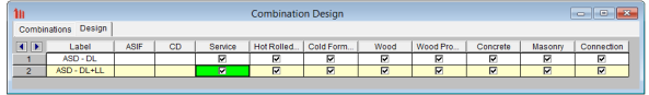 The Service checkbox in Load Combinations- Design tab currently only applies to Concrete Floor Slabs in RISAFloor ES.