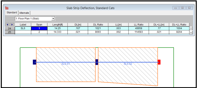Aside from the Strength considerations mentioned above (Flexure and Shear), Elevated Slabs must be checked for Serviceability (i.e. Deflection). RISAFloor ES checks deflection on slabs in three ways: