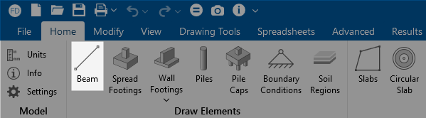 - Click the Beam icon in the Draw Elements section.