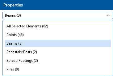 In this section, we discuss the Properties panel for beams, which lets you modify the properties of beams that already exist in your model. For more information about selecting elements, see Graphic Selection.