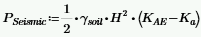 The Mononobe-Okabe/Seed-Whitman equation is an expression for the total lateral earth force, including seismic plus active forces. Thus, to calculate the portion due solely to seismic, we must remove the active pressure portion. The M-O pressure coefficient is calculated as follows: