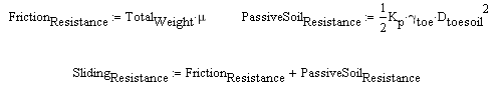 Both the passive soil pressure and friction resistance are accounted for.