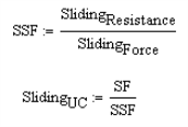 The sliding resistance is then compared against the sliding force caused by the hydrostatic pressure. The ratio of resisting forces to sliding forces is checked against the SF given in that individual load combination.
