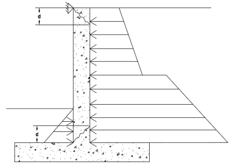 The program will perform a concrete shear check. This check is taken at a distance "d" from the top of footing for a cantilevered wall. It is taken at a distance "d" from both the top of footing and from the top of the wall for a propped cantilevered wall.