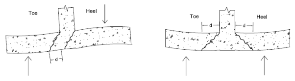 Flexural design for wall footings assumes that the heel and toe portions of the footing are designed as cantilevered beams from the face of the retaining wall. There are generally two deflected shapes that will occur for footings depending on the loading.