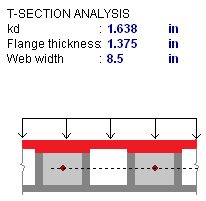 However, if you are using a partially grouted wall where the neutral axis passes through the webs of your masonry, RISA will do a T-section analysis to define the section properties. We use a similar analysis as if you were doing a t-beam analysis for a concrete tee section. For more information on this, see "Design of Reinforced Masonry Structures" by Narendra Taly, copyright 2001, example 6.3, P6.61.