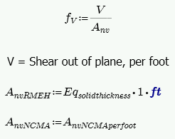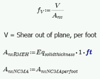 The program calculates the capacity, Fv, from Equation 8-20 shown above. The program also checks to verify we do not exceed the Fv max value from Equations 8-21 and 8-22 (or interpolation between them) that is reported in the Detail Report.