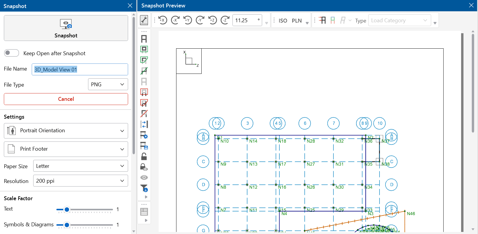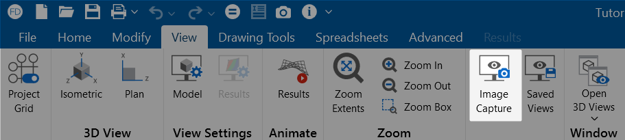 RISAFoundation includes an Image Capture tool on the View ribbon that allows you to create a custom snapshot of a model and save it.