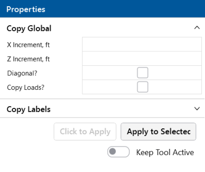 The Global icon lets you copy the selected items by entering in increments in any or all of the global directions. The selected items will copy the increment distance(s) that you have entered.