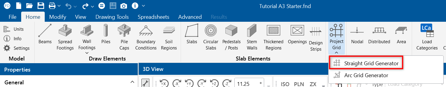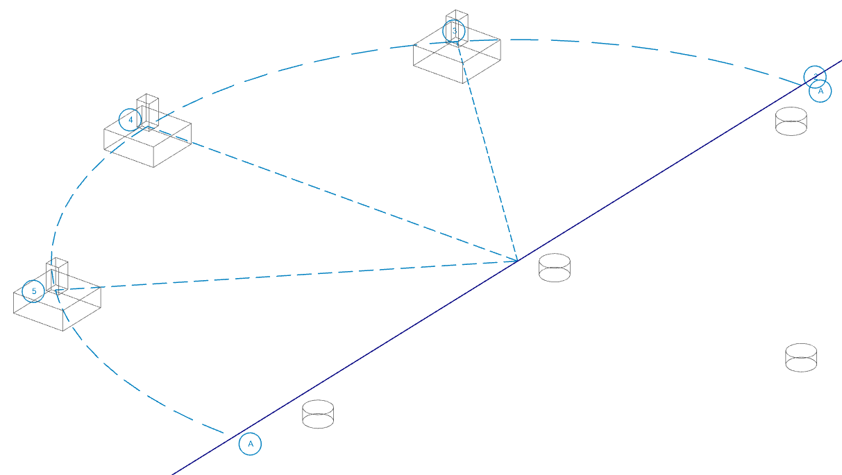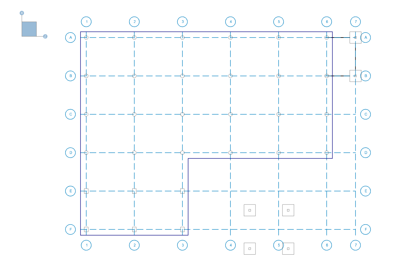 The Project Grid provides convenient snap points for modeling your foundation elements. It also provides convenient terminology to refer to locations in a model, such as "Grid Intersection C-4". The Project Grid is intended to be a permanent part of the model, so unlike the Drawing Grid, it is saved with the model.