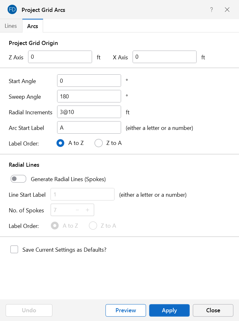 The Preview button lets you see the Project Grid arcs prior to applying them.