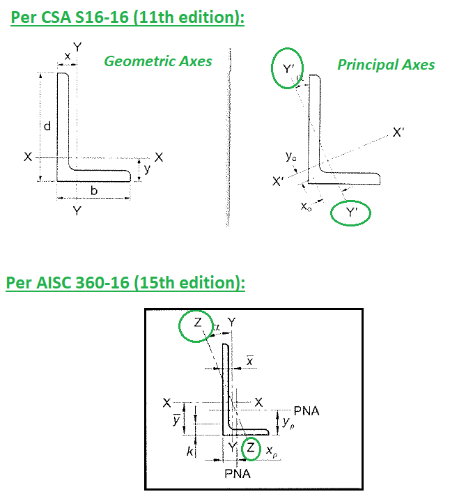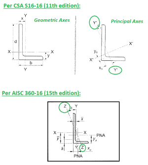 Angles are entered with an "L" prefix. The syntax is "LlongXshortXthick", where "long" is the long leg length, "short" is the short leg length and "thick" is the thickness, in number of 1/16ths. For example, L9X4X8 is a 9" by 4" angle that is 1/2" (8/16ths) thick. For the Canadian and British shapes, all the dimensions are called out in millimeters.