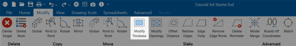 - Click the Modify Thickness icon in the Slabs section.