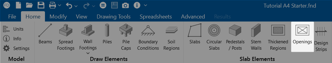 - Click the Openings icon in the Slab Elements section.