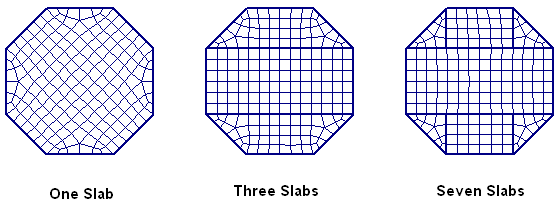 It should be stressed that ALL of the meshes shown above are good meshes that will produce accurate results. However, the image clearly shows how modeling adjacent slabs can force a more uniform and symmetric mesh.