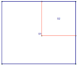Edge Fixity - Adjusts the slab edge fixity to an adjacent slab element. This is useful for slabs that are not monolithically placed, where a shear key or dowels are used to transfer forces out-of-plane to the slab. By default, slab edges are fixed to each other when two adjacent slabs touch each other. Pinned slab edges are graphically indicated with a salmon color, as opposed to the typical blue slab edge. In the example below slab S2 is pinned along both edges that it shares with slab S1: