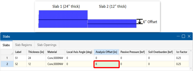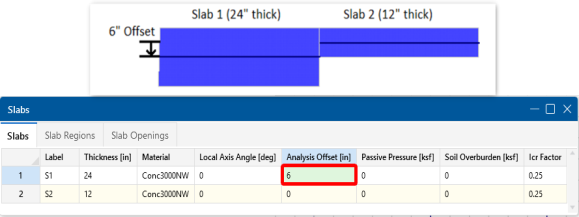 Example 2: This is an example of the slab offset in order to align the tops of each slab.