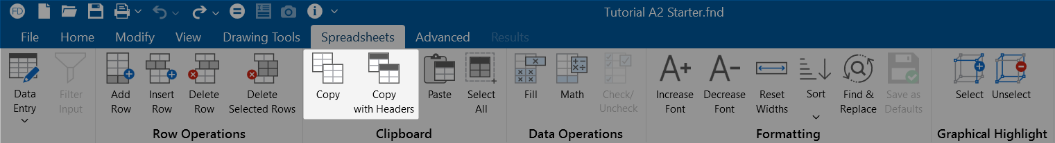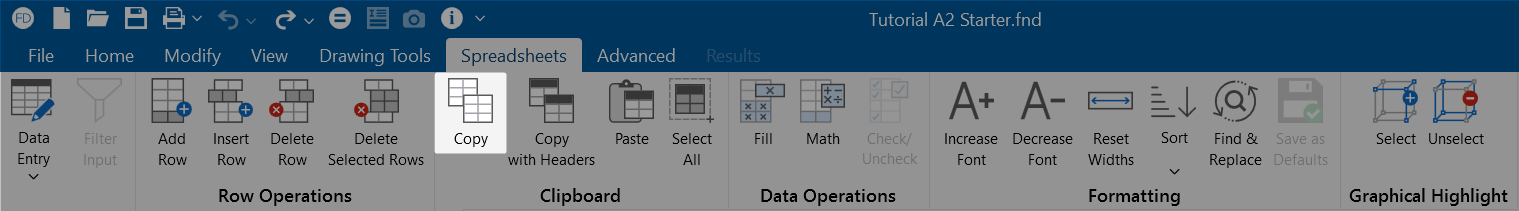 2. To copy the cells select the Copy button from the Spreadsheet ribbon.