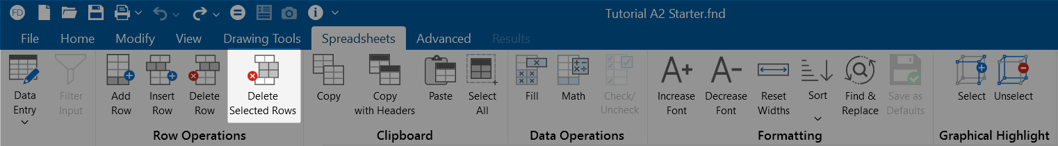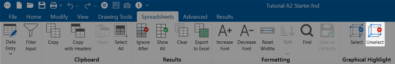 The inverse process can be used by selecting Unselect in the Graphical Highlight section of the Spreadsheets ribbon.