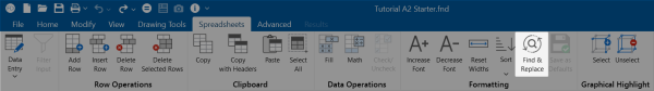 To locate or find a specific point, beam, or slab while in a spreadsheet, click the Find & Replace button on the Spreadsheet tab of the ribbon.