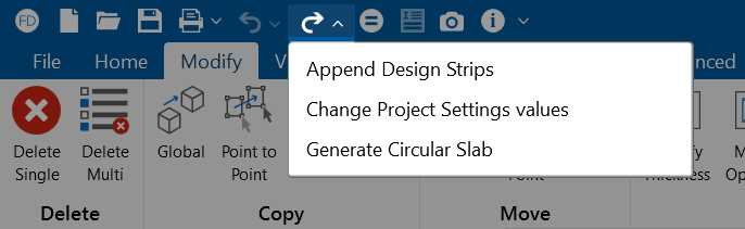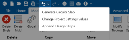 RISAFoundation provides you with virtually unlimited Redo capability so that you may reapply actions that were previously undone. Simply click the Redo button as many times as the Undo button was used just prior.
