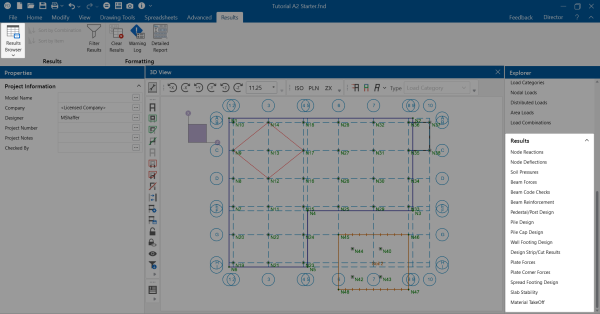 Powerful spreadsheet operations may be used to view, sort and edit the input data and results. The spreadsheets and model views are synchronized. As you edit a model graphically, the spreadsheets are automatically updated and as you make changes in the spreadsheets, the model views reflect these changes immediately.