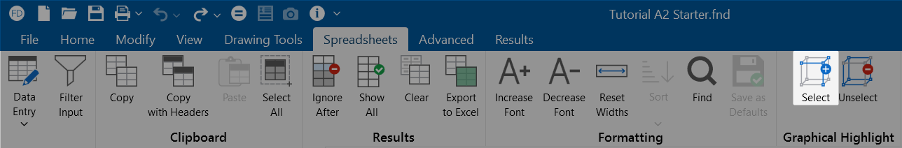 3. Click the Select icon in the Graphical Highlight section of the Spreadsheets ribbon.