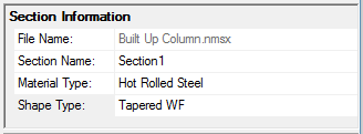 File Name - This is the name of the RISASection file (.nmsx file). It cannot be edited from this window; if you'd like to re-save the file with a different name please select Save Section File As from the File menu.
