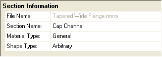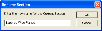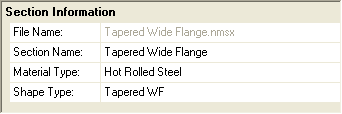 In the Section Information window, select Hot Rolled Steel from the Material Type drop down menu. Then, select Tapered WF from the Shape Type menu.