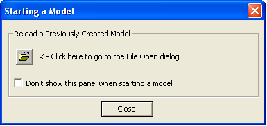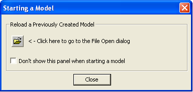 2. Click Close to close the Starting a Model dialog.