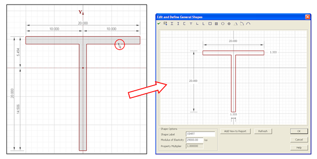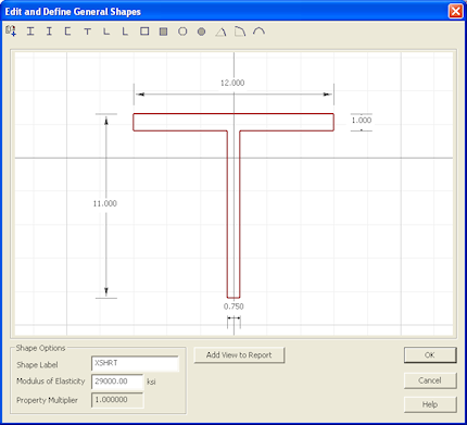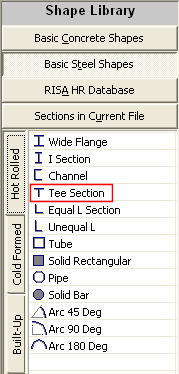4. On the left side of the application, under Shape Library, click Basic Steel Shapes. Double-click the Tee Section shape it will be added to the workspace.