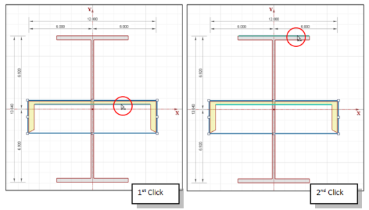 on the Window Toolbar. Then, click on the inside edge of the channel web. Last, click on the upper edge of the top flange on the wide flange shape.