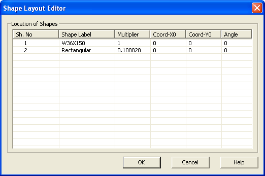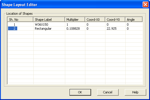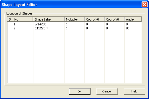11. Make sure that the Coord-Y0 value of both Shape Number 1 (W14X30) and Shape Number 2 (C12x20.7) to 0. Click OK to close the dialog and make the changes.