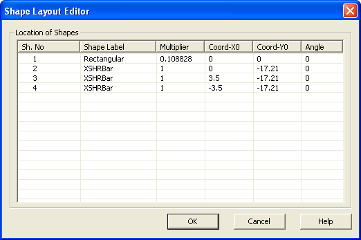 and change the Y0 coordinate of Shape No. 2 (XSHRBar) to -17.21.