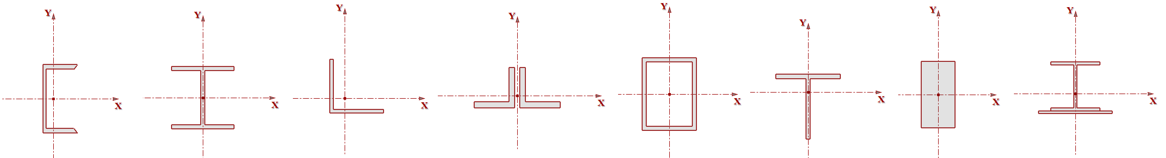 The geometric properties are computed with the Polygon method. All closed shapes are represented by closed polygons. Curvilinear and circular shapes or edges are represented by several straight line segments. The properties of the overall shape are computed by geometric summation of the properties.